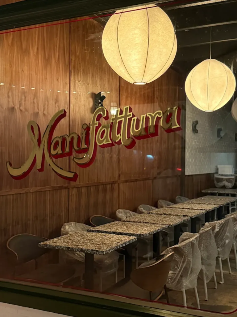 From the team behind Aperitivo, Manifattura offers classic Italian fare with a modern twist. The mid-century-inspired space features dark wood panels, terrazzo-style tables, and exposed brick, creating a timeless yet inviting atmosphere. Handmade pastas dominate the menu, including ricotta dumplings in pesto, traditional tagliatelle with ragu, and cacio e pepe. Signature drinks, such as the juniper-infused Negroni or Hugo Spritzer, perfectly complement the rich flavors of the menu. Manifattura is ideal for intimate dinners or casual nights out with friends.